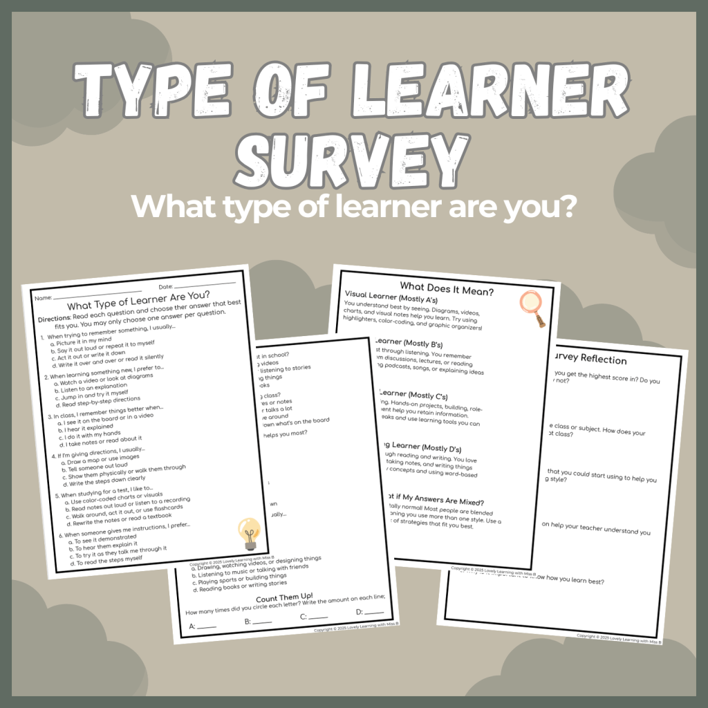 Check out this FREE “Type of Learner Survey.” Perfect for the back-to-school season!