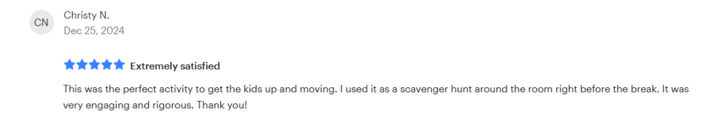 The joy of hearing from other teachers who use my products keeps me going and ensures that I never want to stop creating. I have had the pleasure of reading reviews on how engaged students are using my products, and it ensures me that I am doing the right thing!