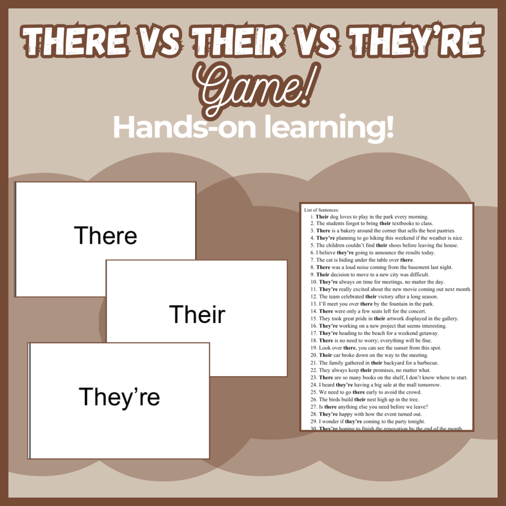 To avoid these mistakes, I try to spend time on each common homophone. My “there/their/they’re”, “affect/effect” and “your/you’re” games are a big hit in my classroom. We don’t play these all on the same day. I take a week or two to really focus on each homophone. We explain what the difference between the two is. We look at examples of them being used correctly, and then we play our game. I am always looking for an excuse to play a game in my classroom, and these are my favorite!