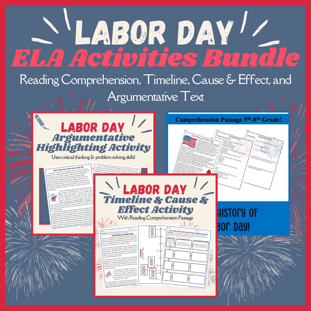 The next activity (and probably my favorite) that I like to use around Labor Day is my “Labor Day Timeline & Cause & Effect Activity.” This activity is a 3-for-one. It includes a short passage on the history of labor day, 7 major events that happened, a timeline, and a cause & effect graphic organizer. Students are asked to read about the history of labor day and to highlight all the major events that took place. Then, they check their major events and make sure they match with the 7 major events that the activity provides. Students are to cut and paste these major events onto the timeline in chronological order (you can also choose to have them handwrite the events if you aren’t feeling like busting out the scissors and glue sticks yet). Lastly, students are asked to fill out a cause & effect graphic organizer. Students are asked to go through each major event and tell me what caused this event to happen and what the effect of this event was/will be.